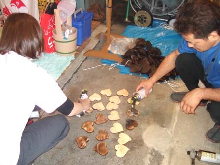 このハートのヒノキの入浴木に、地元の幼稚園、保育園の子供たちに