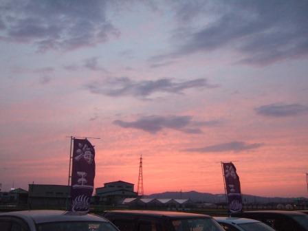 素敵な夕焼けの中、ロウリュの火をおこしてます・・・・