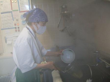 熱気むんむん☆ めんをふってふって振りまくって、湯ぎりばっちり