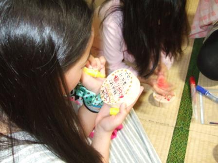 一生懸命おかあさんへの感謝の言葉を書いています。